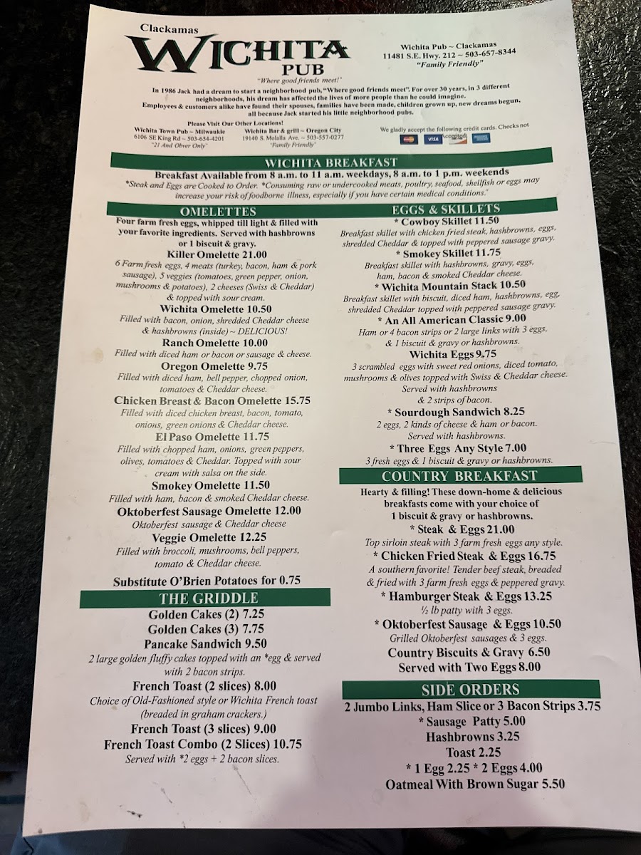 Welcome to Wichita Pub, your go-to spot for a delightful bar and grill experience in Clackamas, Oregon. Situated at 11481 SE Hwy 212, Wichita Pub greets you with a diverse menu that caters to all cravings.